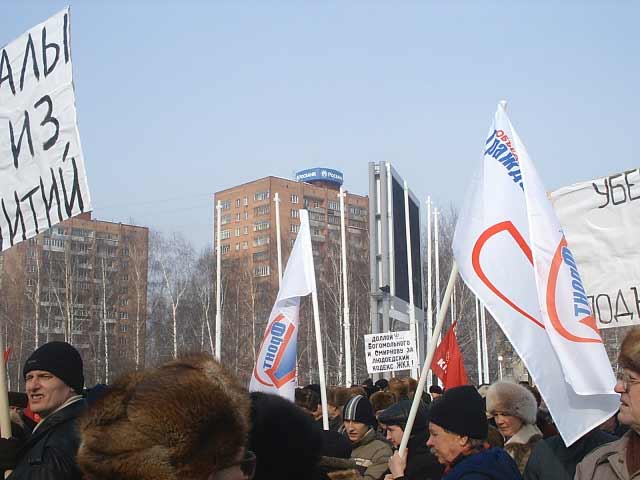 В Ижевске завершилась акция протеста против реформы ЖКХ и повышения тарифов. К 12.00 на Центральной площади города собралось более 1000 человек. Над митингующими возвышались флаги КПРФ, "Народной воли" и ОГФ. Мероприятие открыли слова: "Мы пришли на поминки нашего жилья".